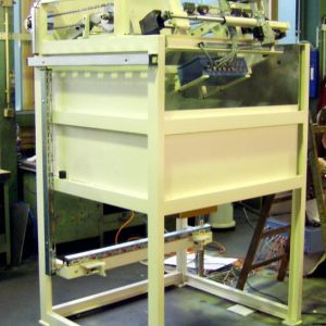 Mit vertikaler Hubbewegung, somit ist eine Beladung mit Hubwagen möglich, auch wenn die Abgabehöhe hoch ist.