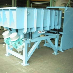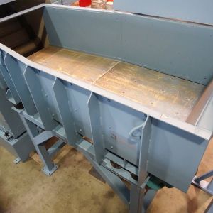 Eine Vibrationsrinne mit Unwuchtmotoren, die ein kundenspezifisches Volumen aufnimmt und dosiert abgibt.