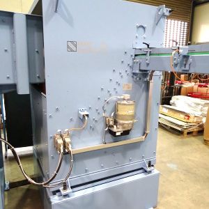 Falls die Werkstücke mit einem Längenverhältnis L/D < 1,5 liegend im Strang übergeben werden sollen, so kann eine NC-Abwurfklappe zum Einsatz kommen, die bei jedem Hub die stehenden Werkstücke definiert abwirft.